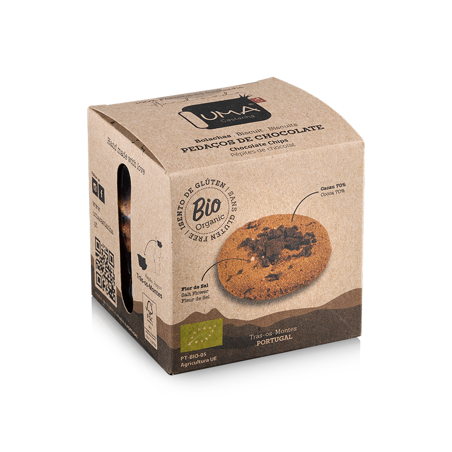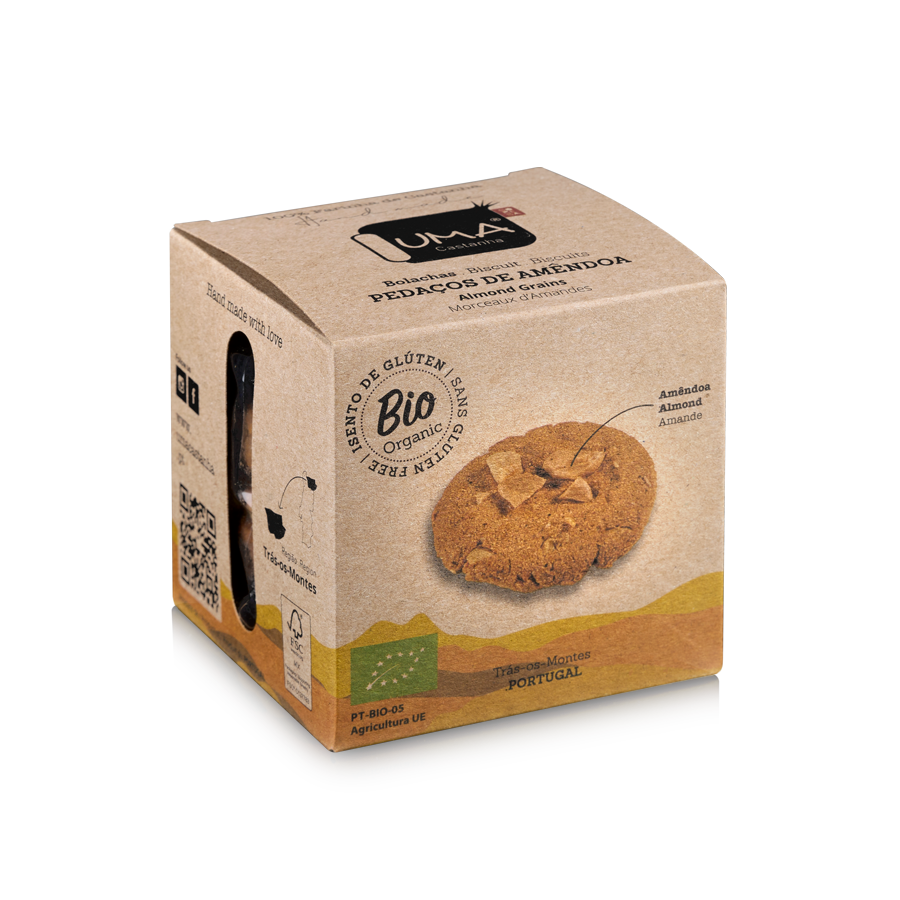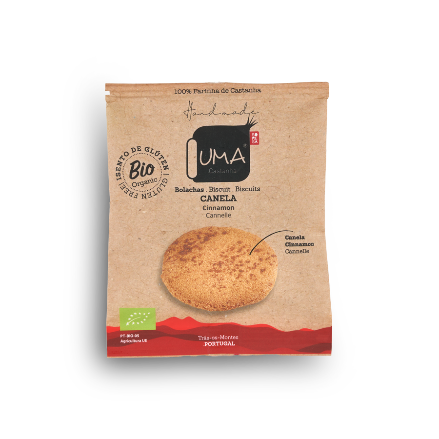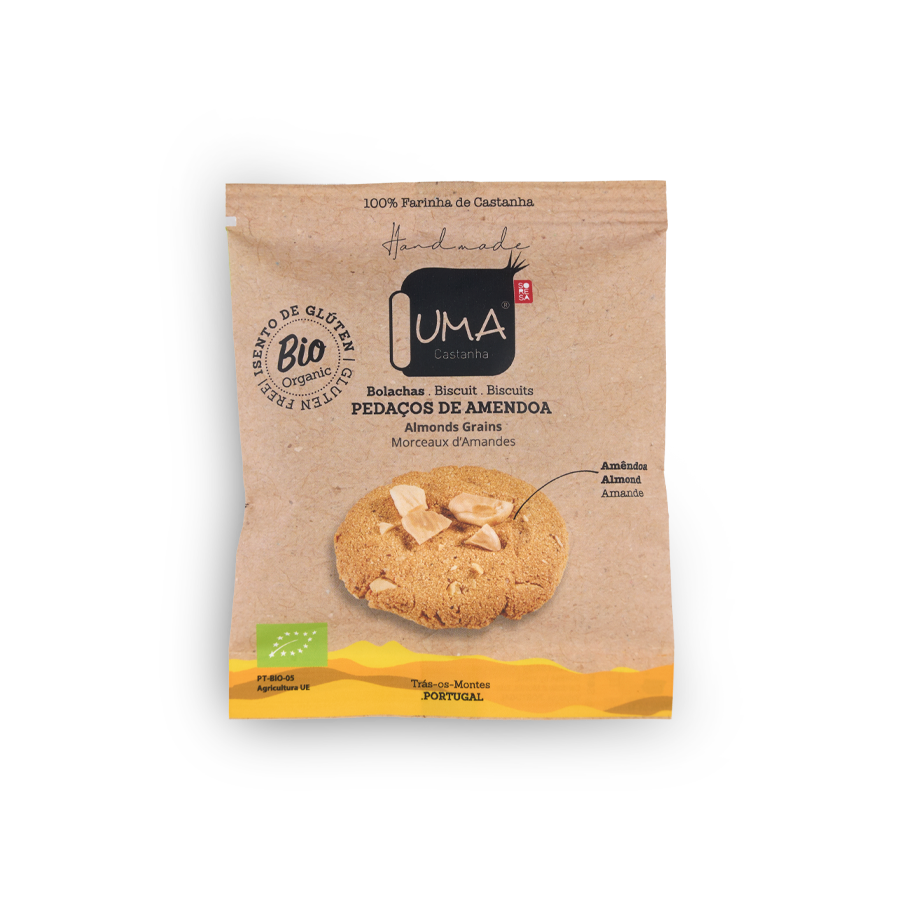 As Bolachas UMA, sem glúten e feitas à mão, combinam a Farinha Biológica de Castanha Judia com ingredientes orgânicos para um snack nutritivo.