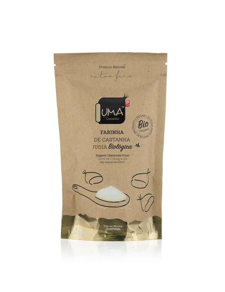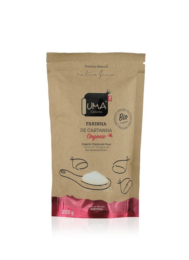 Já a Farinha de Castanha, moída de forma tradicional, preserva as propriedades nutricionais, sendo uma opção versátil para enriquecer pratos. Produtos 100% portugueses, perfeitos para uma alimentação equilibrada.